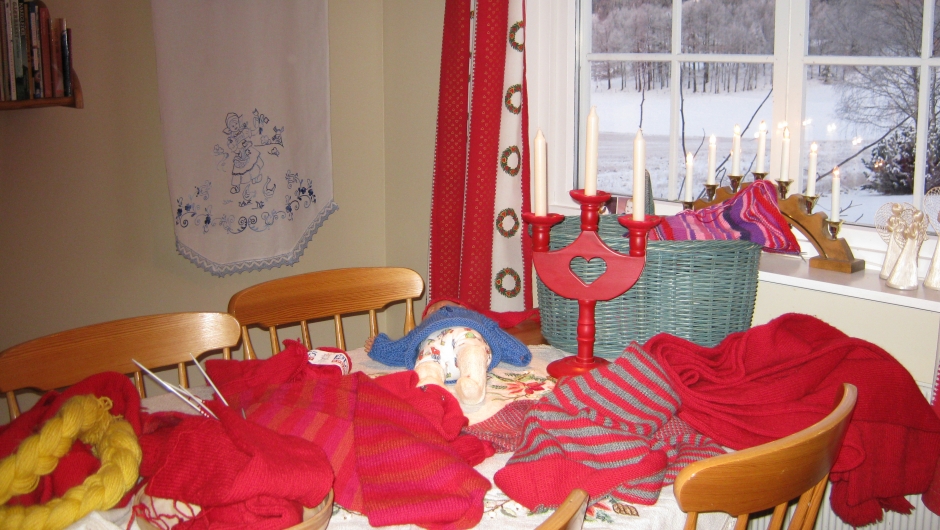 Tidlig i desember kommer fire kvinner sammen rundt et kjøkkenbord. Tre store og ei lita. Og strikketøyet er med. Rødt - det er jo desember. Og det er langnisselua som er på pinnene. Erik Baanerud fra NRK Nitimen er nysgjerring på dette og må komme for å prate og prøve og sende det på eteren ut til mange kjøkken landet over.
