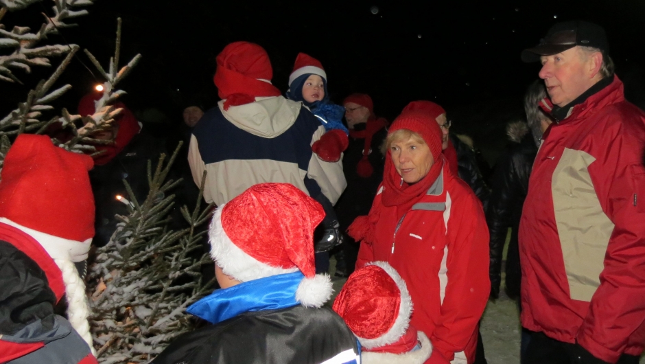Tenning av lysene på julegrana ved Fjellhall