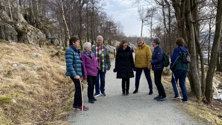 Vi samlet oss i bilene og kjørte til Jørpeland. 11 damer hadde en fin tur rundt holmen.