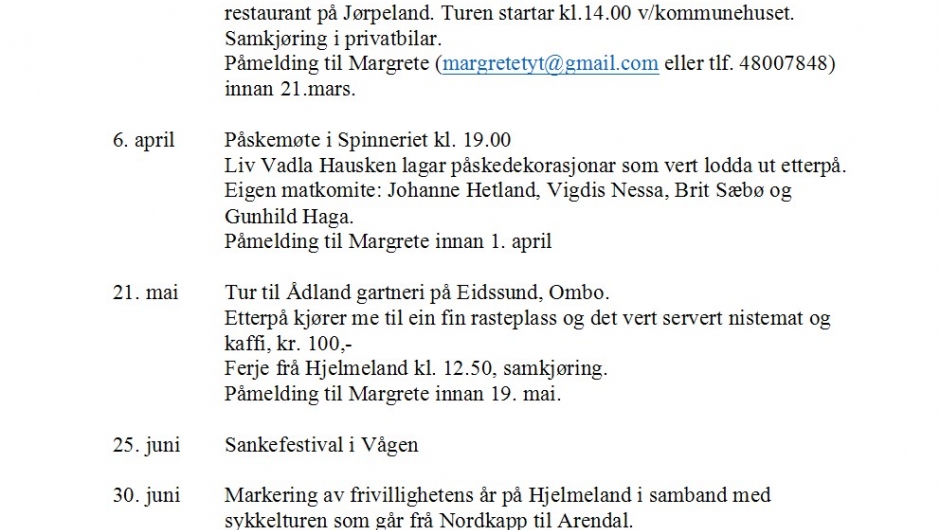Påmelding til Margrete (margretetyt@gmail.com eller tlf. 48007848) innan 21.mars.