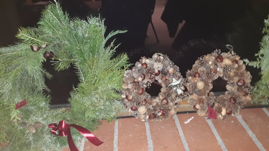 Bygdekvinnelagets julelotteri ble trukket på julemøtet den 8/12. De heldige vinnerne blir offentliggjort i lokalavisa Kanalen som utkommer neste torsdag. Det var totalt 28 gevinster - i hovedsak laget av bygdekvinnelagets egne medlemmer. Her kommer noen bilder av de vakre julekransene, kongle/nøttekransene, granbarnissen + div. andre håndarbeider og gevinster.