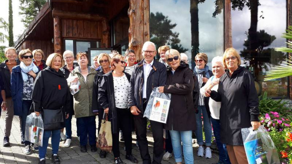 Vi ankom til Stavanger, og etter innkvartering på hotellet, spiste vi middag på en restaurant i nærheten der det ble servert nydelig torskemiddag. Neste dag kl. 11 var det avreise med båt til Flor & og Fjære. Vi ble tatt imot av eierne som var guider. I begynnelsen var det regn, men guidene sa det ble sol etter lunsj. Det ble servert fiskesuppe, en kjøttrett og dessert. Så kom sola, og det kunne fotograferes. Det var fantastisk.
