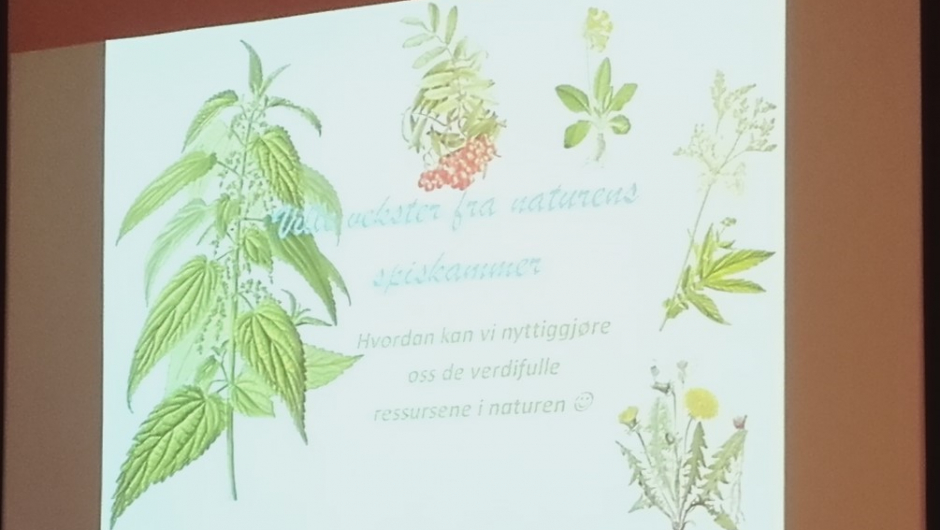 Utenfor Søve viste hun oss de mest kjente vekstene som vi kunne finne i nærmiljøet, og hun forklarte når de var best å plukke, og hva vi kunne bruke dem til. Hun plukket med seg vekster i en kurv som hun tok med inn i auditoriet hvor informasjonen fortsatte. De mest aktuelle og kjente hun tok for seg var: Brennesle, skvalderkål, meldestokk, løvetann, geitrams, granskudd, ramsløk, karvekål, bergmynte og div. andre. Felles for de fleste var å plukke de nye skuddene.