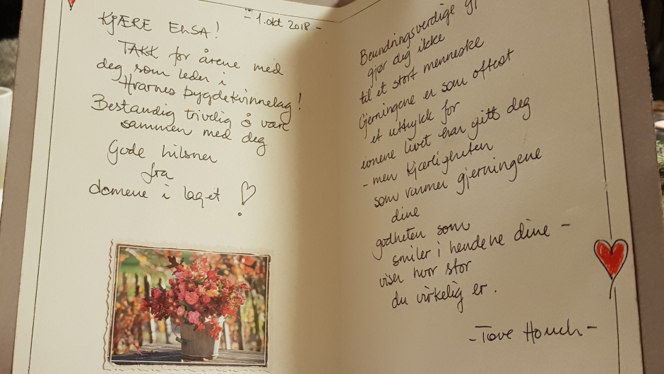 Elsa takket for årene som leder i bygdekvinnelaget, takket for all støtte og hjelp.