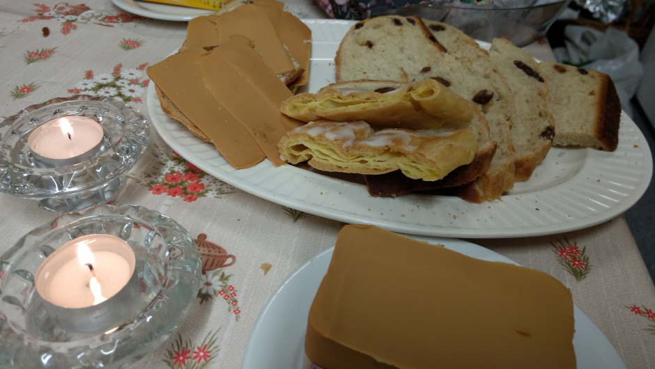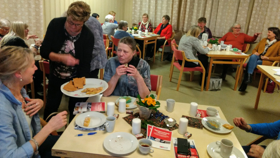 Vi fikk et deilig avbrekk i disse alvorlige temaene. Vertinnene Herborg og Elsa hadde denne gangen fylt kjøkkenbordet med deilig vannbakkelsstang, julekake med smør og brunost til og glutenfrie muffins. Mmm…. Og selvsagt velfylte kaffekanner og te.