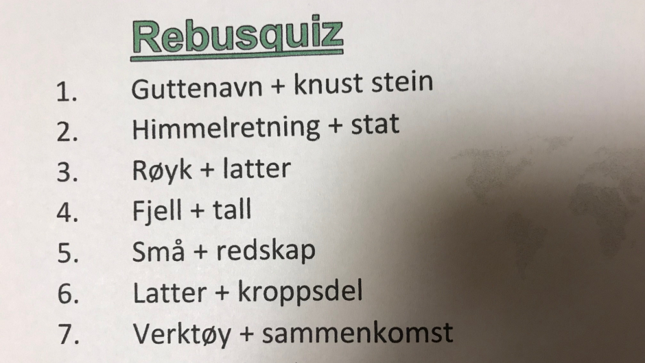 Neste aktivitet var rebusquiz og kveldens oppgaver var å finne frem til stedsnavn i nærheten og utenlands. Loddsalg og utlevering av gevinster er en fast og viktig del av møtene. Denne kvelden var det noen bord som håvet inn gevinster, mens andre bord fikk lite eller ingenting. Og slik må det være, så det er bare smøre seg med tålmodighet til neste møte og nye sjanser i februar.
