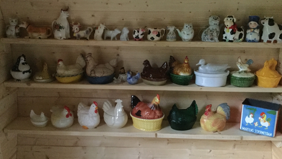 Der har familien Wirgenes laget en fantastisk hage med fem spennende hus med samlinger. Et av husene er fylt opp med effekter fra TV-serien MASH, et er fylt opp med elgeffekter, et med effekter fra Flåklypa og Caprino, og et inneholder over 1300 ulike eggeglass. og et postkontor, og det er lite som er overlatt til fantasien.