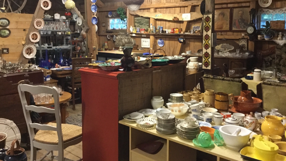 På låven har de mange og flotte brukte ting og tang. Selv om de nå tenker å avvikle brukt-salget er det fortsatt mulig få handlet ved å ta kontakt.