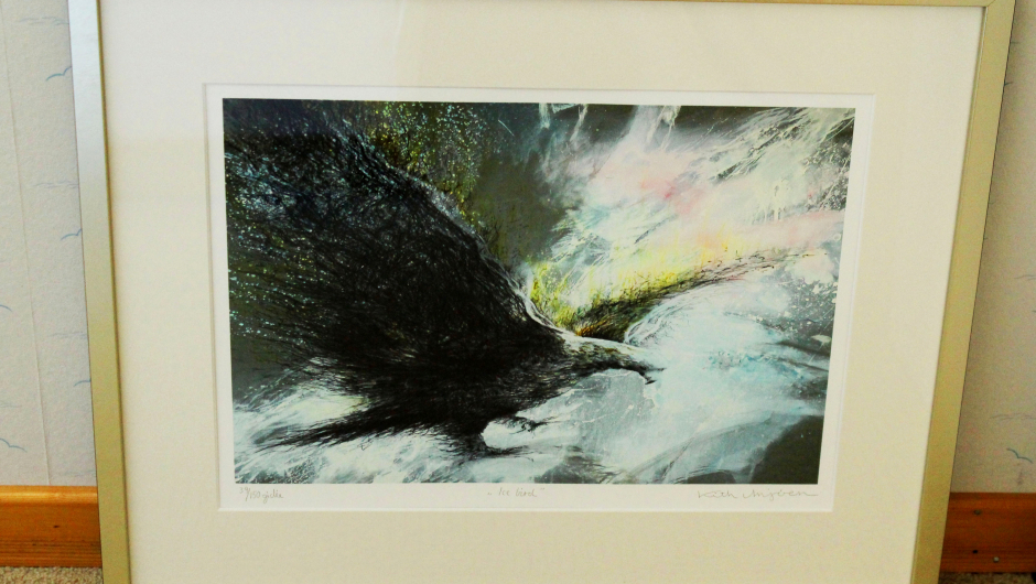 Bilde, grafisk trykk, «Ice Bird» av Kith Mjøen, innramma 53x43 cm.