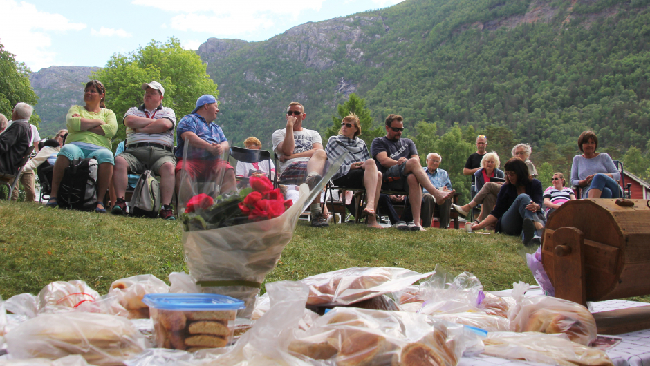 Mange hadde møtt fram på "Kakedagen"i år og, dei fleste med håp om å sikra seg krotakaker. Men bygdekvinnelaget sine medlemmer hadde og laga mykje anna godt bakverk til utloddinga. Alt var tydelegvis populært, i alle fall vart alle årane selde under kvar av dei tre trekningane me hadde. Denne basaren er hovudinntektskjelda til Kinsarvik Bygdekvinnelag, og me fekk eit godt resultat også i år.
