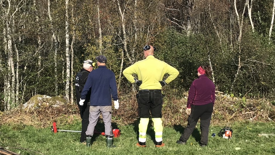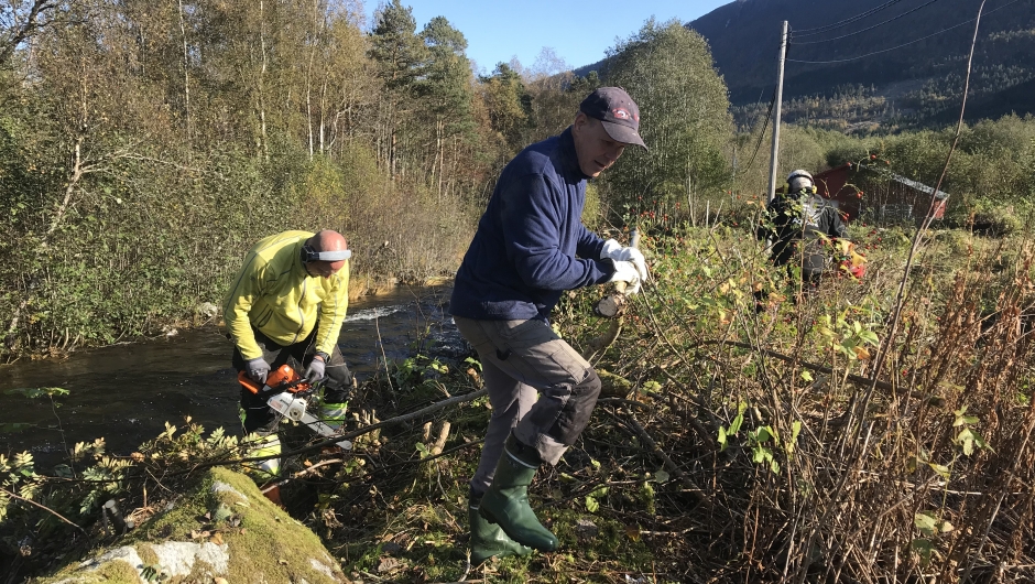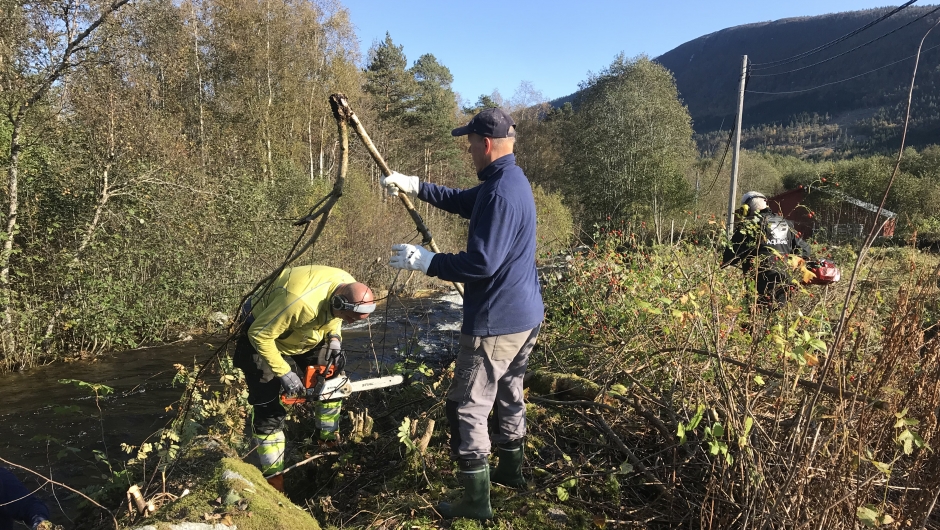 Jobben som skulle gjøres var å sage ned og rydde vekk trær og kratt langs elvebredden fra "Storvik" til gamle Storebro. Dette arbeidet gjøres for å gjøre klart til graving og opparbeidelse av gangveien som skal gå langs elva.