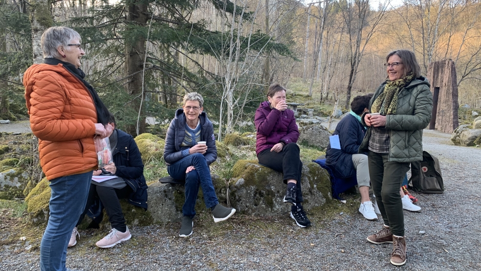 Etterpå gjekk vi den korte turen ned til Steinparken der det var servering av kaffi og kaker, samt blomelotteri som gav ei fint overskot i klubbkassa.