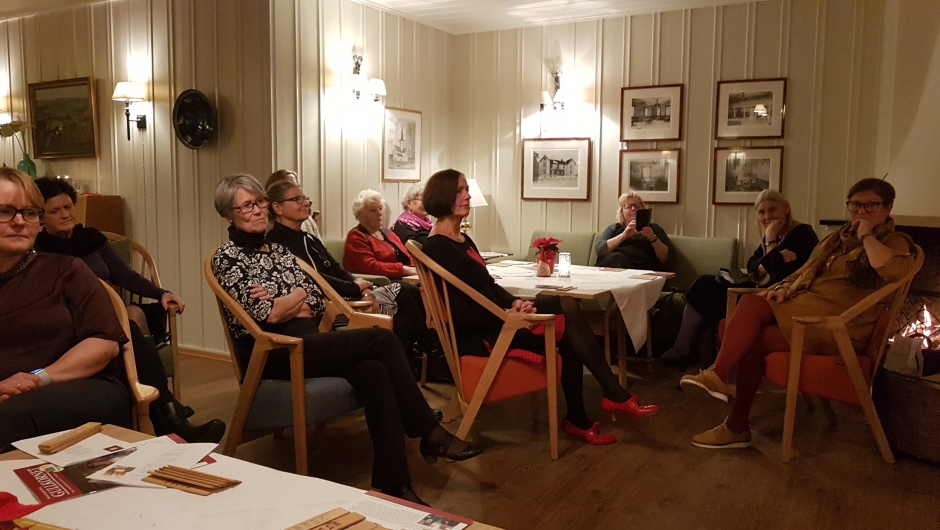 Så var det duket for julemøte i Ringsaker bygdekvinnelag. Årets siste møte på planene våre. Det brant friskt på peisen og stua var pyntet til jul.