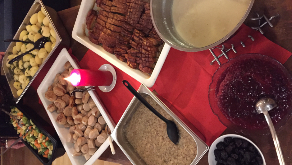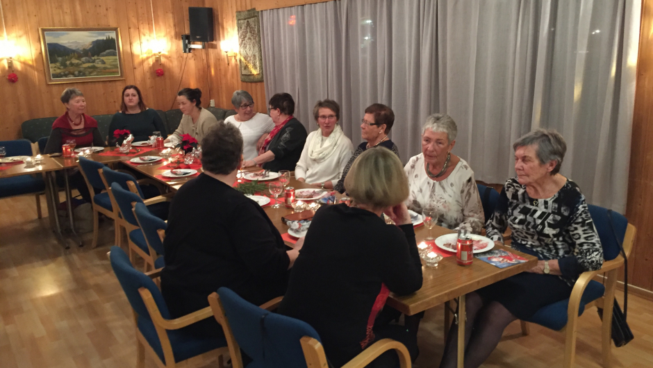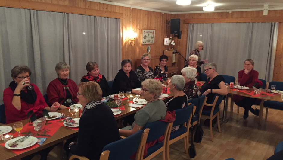 Vi spiste deilig julemiddag, og det var marsipankake til dessert. Marit Rostad var en riktig så underholdende auksjonarius, og solgte varer som var til overs etter julemarkedet på Haugeåsen i november. Inger Rikke leste to fine fortellinger av Prøysen for oss.