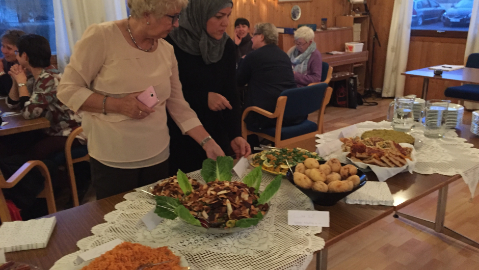 Vi var også så heldige å få servert nydelig mat fra Irak og Syria, som Khawla og Adala hadde laget til oss. Det ble en flott kveld på Helsehuset på Rolvsøy. Vi ser fram til å fortsette med inkludering og KvinerUT!