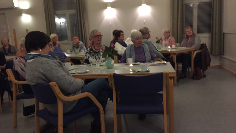Petter Skauen fortalte om sitt arbeid som hjelpearbeider for Santalmisjon og Kirkens Nødhjelp, i Equador og Guatemala, og også som fredsarbeider i Guatemala. Petter Skauen har vært nominert til Nobels Fredspris, han er tildelt Østfoldprisen og flere andre priser for sitt arbeid. Vi fikk høre litt om Guatemala's historie, og om undertrykking av Mayaindianerne. Det var mange sterke historier som gjorde inntrykk! Kveldens loddsalg innbragte kr 4000,- og pengene går til arbeidet i Enkelandsbyen i Guatemala. Inger Rikke avsluttet kvelden med å lese en historie fra Prøysen.
