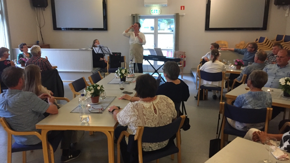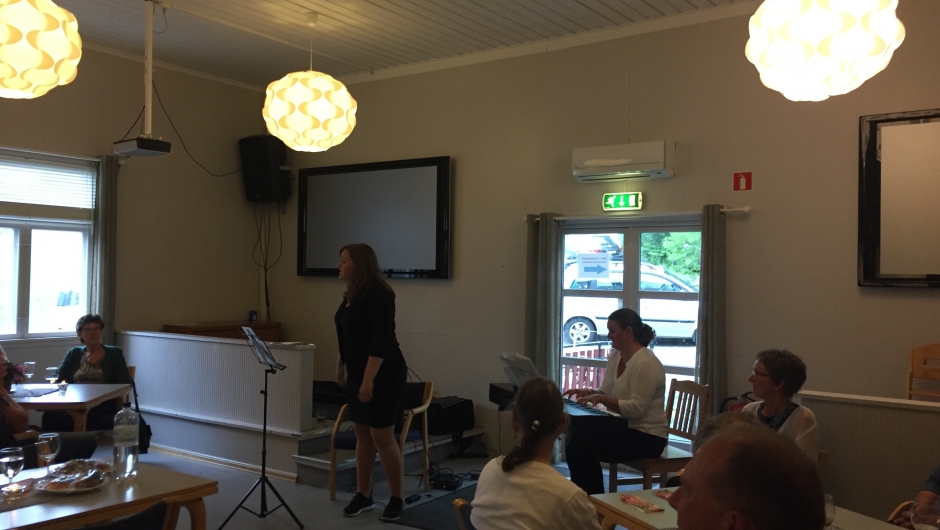 Mandag 18. juni hadde Rolvsøy Bygdekvinnelag sommerfest på Nylende Grendehus. Det ble en hyggelig kveld med god musikalsk underholdning av mor og datter, Heidi Kaspersen og Elisabeth Spydevold. Vi fikk høre utdrag fra musikaler, og kjente og kjære sanger.