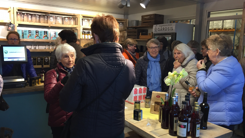 Tirsdag møttes nesten 30 damer for informasjon og omvisning i det ny Lokalmatsentert i Rygge. Spennende å høre hva de har fått til. De er nå 33 produsenter knyttet til senteret, men ønsker seg flere. De sammarbeider om å selge seg inn i forskjellige markeder. Satser på foredla varer. Varene trenger ikke være produsert lokalt her, men må være produsert et bestemt sted og småskala. Etterpå var det kveldsmat og utloddning på Hadeland.