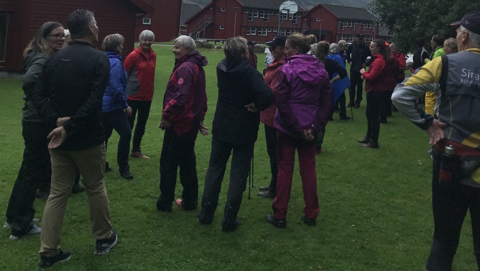 Bygdekvinnene har nå slått seg sammen med turgruppa på Tonstad, så totalt var det ca 30 som gikk turen og som hadde en sosial og fin tur sammen.