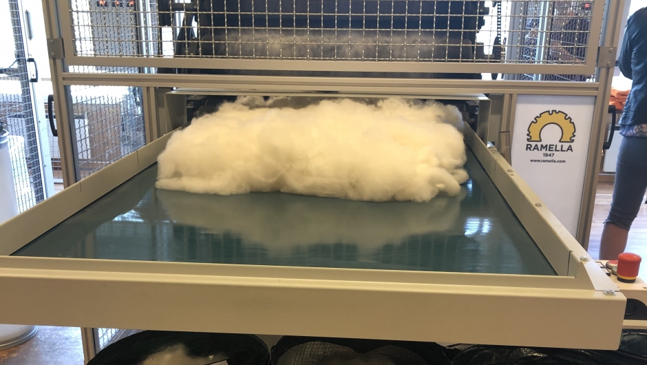 Plukkaren drar fibrane frå kvarandre, men ulla bli svært statisk.