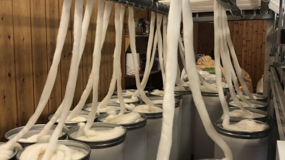 Me byrja i to grupper på Norspinn AS pga. smittevernreglar, og fekk ein svært grundig gjennomgang av Elizabeth Aitken, eigar og entusiast, om arbeidsprosessen frå ulla vert levert til hespelen er klar for sal.