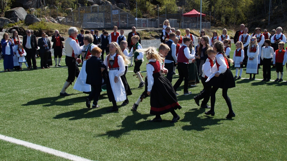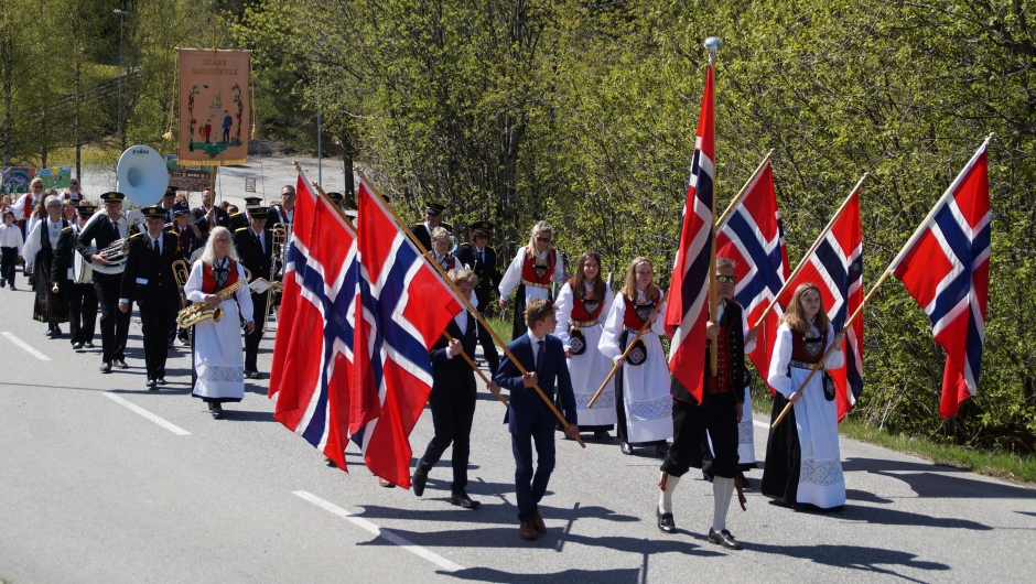 Flott 17.mai i Skare. Strålende sol og alle koste seg. Dagens tale holdt 7.klasse, der alltid Skare Bygdekvinnelag blir nevnt. Det er avgangsklassen med forelder som arrangerer 17.mai. Fint å se elever som likte seg i dansen fra 1.klasse til de eldste.