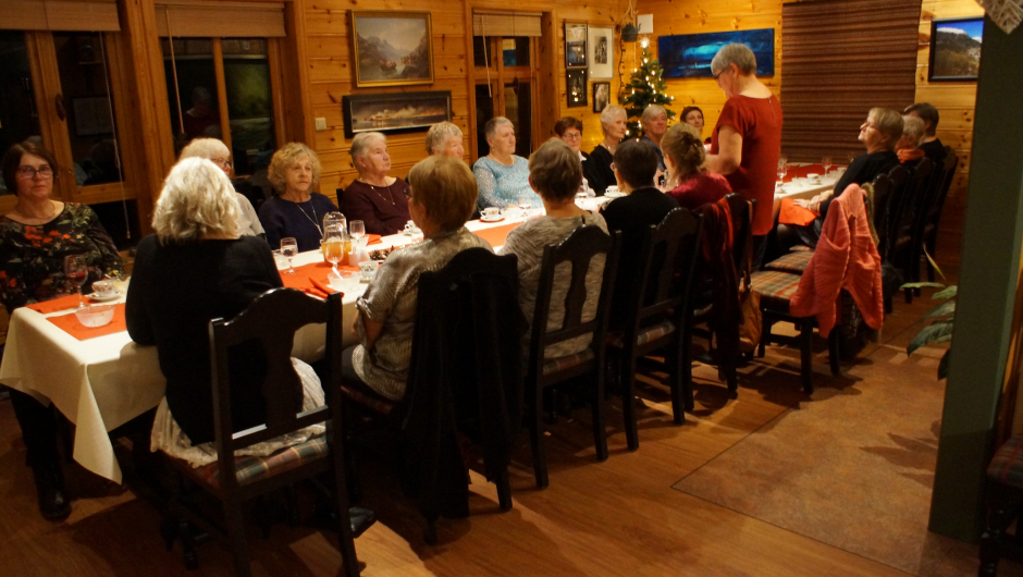 Det blei ein rolig, men kjekk feiring av 70årsdagen til laget vårt. Vi hadde god julemiddag i Tjødnadalen hos Anders Gavle. 22 medlemmer var med oss denne kvelden. Praten gikk livlig rundt bordet, og det blei ein del mimring. Kari las opp fra Framsteg som lagets medlemmer har skrevet stykker i, både fri dikting og andre fortellinger. I dei siste år har det ikkje blitt skrevet i Framsteg. Noe me kanskje burde tatt opp igjen.