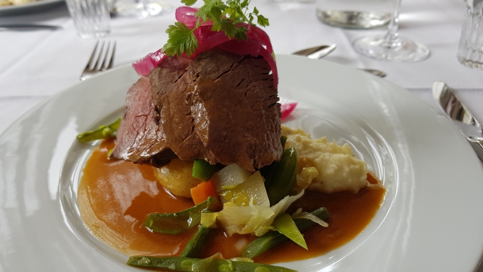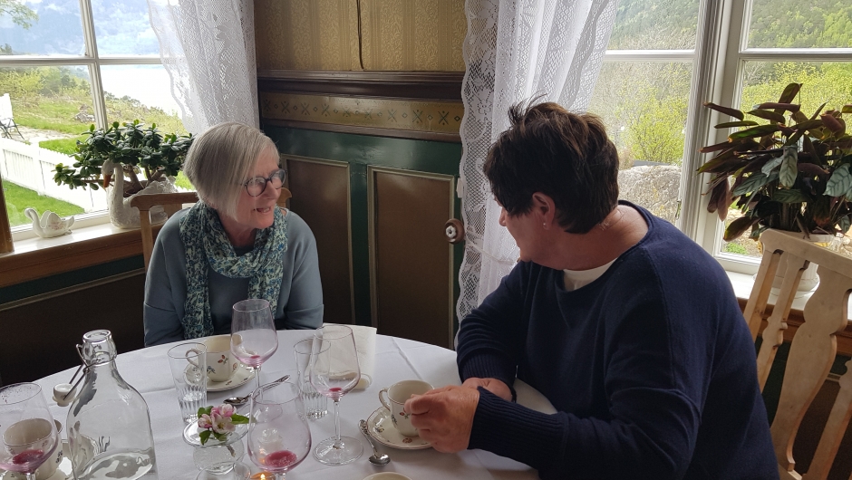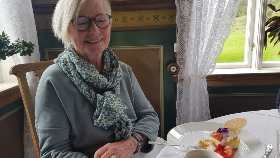 Dei tilbaud overnatting og servering til turistar. Og held selskap og servering for dei som ynskte det. Vi hadde tinga middag og dessert og vi fekk nydeleg oksesteik med lekre småpoteter,fine grønnsaker, blomkålpure og svært god saus. Til dessert fekk med amerikansk ostekake. . I det heile ein svært god middagsstund.