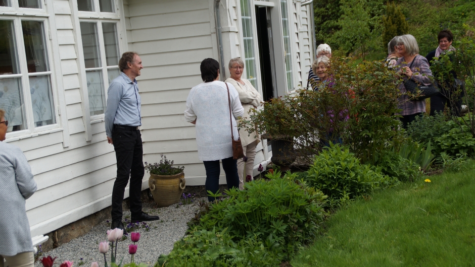 Med fylte fem bilar og drog av garde. Sidan me møtte kl 11 og skulle vera på Huse Gard kl 1500 hadde me god tid. Det var ein fin tur ut Sørfjorden der bløminga var i full gang. Kinsarvik er nok ikkje den store byen men dei har nokre fine butikkar og det blei handling på damene. Kaffi og litt å bita i blei det og tid til( (.
