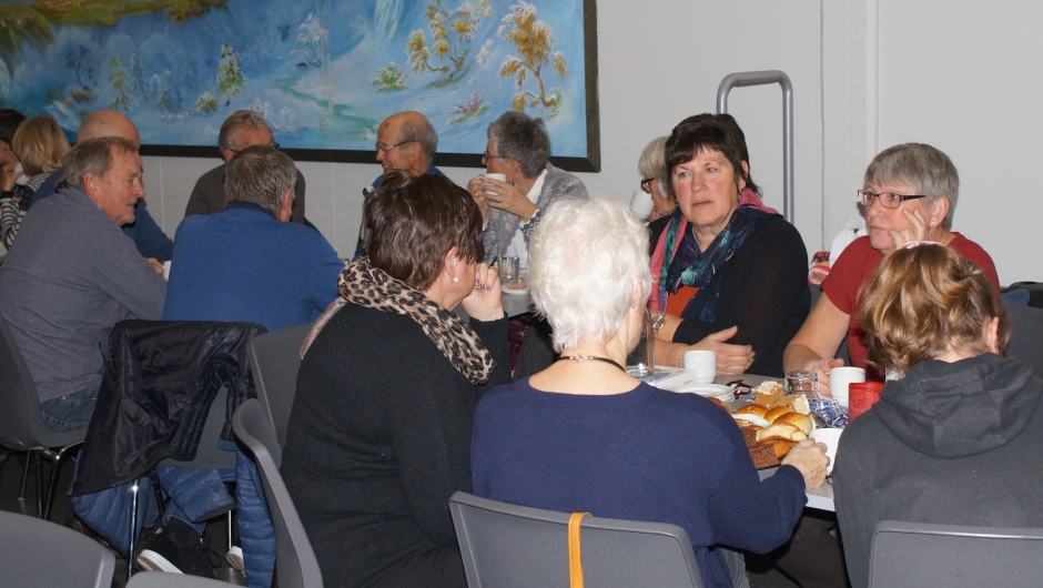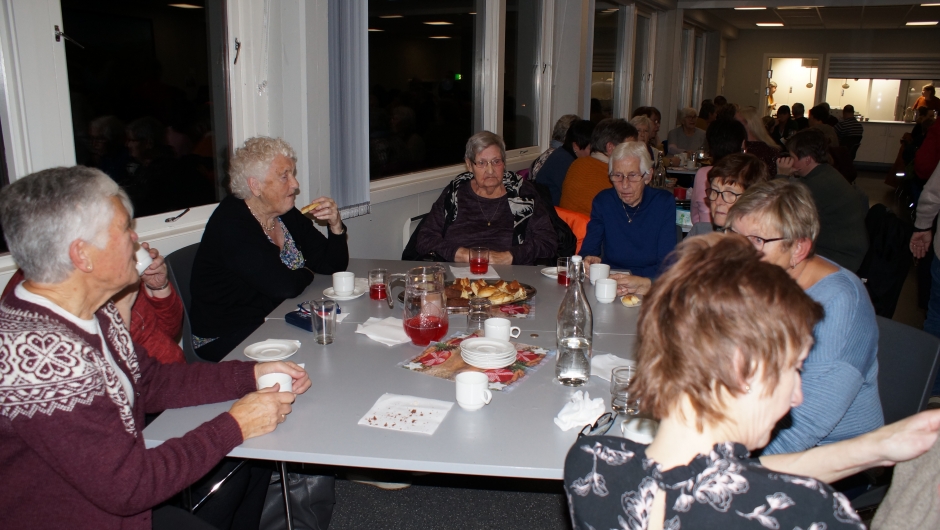 Kaffepause må ein ha og vi serverte heimalaga kaker, bollar, mjølkekaker,lappar og heimalaga ripssaft. Folk koste seg.