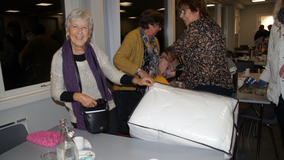 Før basaren satt vi på Joker og solgte lodd på bøkene. Det var til hovedgevinstene. Ellers var det åresalg på basaren. Vi hadde laga mye fint på møtene gjennom året både til bøkene og årene.