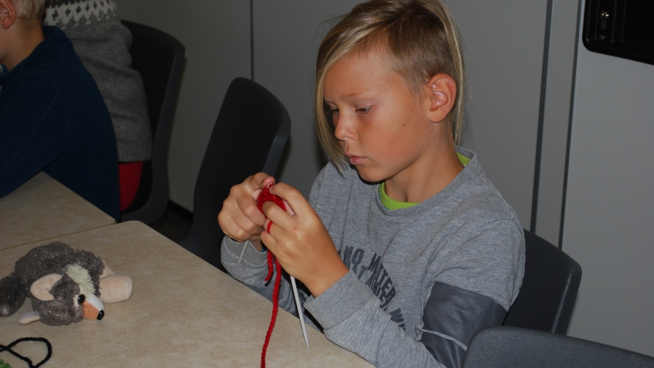 10.10.19 var det tid for strikking med 4.klasse. Me var 3 medlemmer frå laget som møtte 6 spente elevar. Då dei hadde valgt seg garn, var det å leggja opp masker til sommarfuglar.