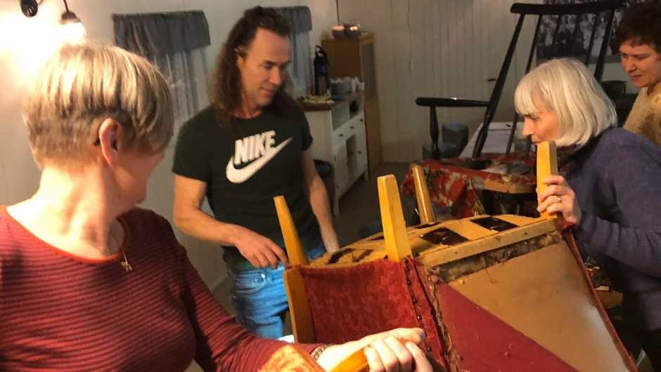 Se på hvilke møbler vi skal trekke opp, kartlegge ulike teknikker, demontere og dokumentere, kartlegge innkjøpsbehov. Fotografer eller notèr gjerne hvordan trekkinga var utført, rekkefølgen på demontering, så har du «bruksanvisning» klar til nytt stoff skal legges på.