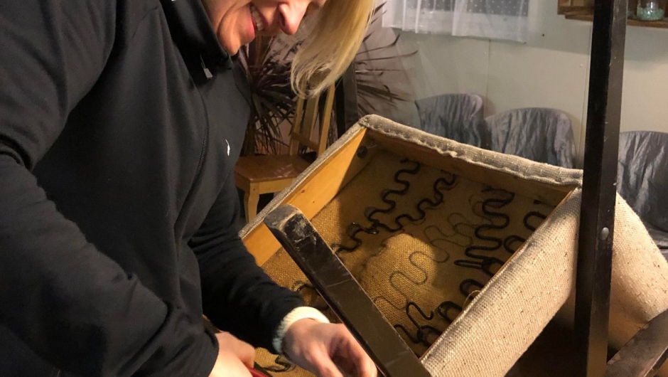 Polstre og trekke om. Hjemmelekse: Polstre og trekke om hvis du har et krevende prosjekt eller flere stoler.