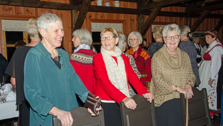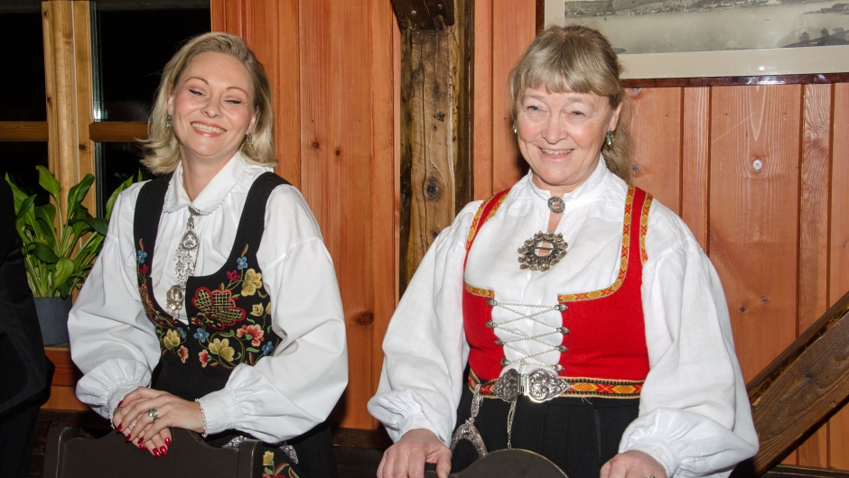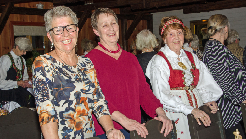 Nydelig pynta bord og vakre bygdedamer klare for en festaften