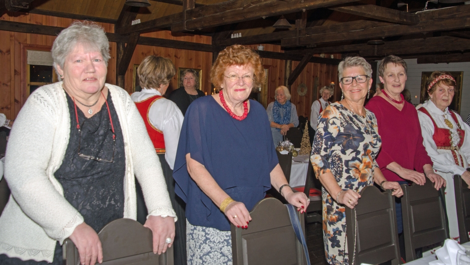 Leder, Wenche Torsøe ønsket velkommen og Torill Holland holdt velkomst talen. Som alltid når vi kommer på gården til Karlsvik får vi flott servering i lekre lokaler. Leder i Vestfold Bygdekvinnelag, Anne Kathrine Munkejord holdt en tale om det å være reflektert. Leder i Sem Bondelag, Lars Rom holdt også en hyggelig tale for damene. Wenche takket begge for gavene, refleks, blomster og en flott pengegave. Kathrine Samland kom med en overaskende sum penger hun også, hun hadde samlet inn gaver til en utloddning hun arrangerte før jul. Dette overrakte hun leder i kveld. hun hadde også skaffet til veie mange gevinster til kveldens loddsalg, fabelaktig innsats, tusen takk! Kari Eik holdt også en tale, der hun fortalte fra 80 åringens liv med mye historie. Mary Kristensen fortalte om hennes historier og opplevelser i laget, gjennom mange år. Mye morsomt og innteressant. Vi fikk servert fantastiske kaker til kaffen, deretter kom bandet "Rust" og underholdt oss. Mange gode gamle sanger, noe nytt og vi sang med til fine rytmer. Etter utloddningen med alle de flotte gevinstene som mange av oss var heldige å vinne. Ønsket vi hverandre god juletid og sang sammen Deilig er jorden.