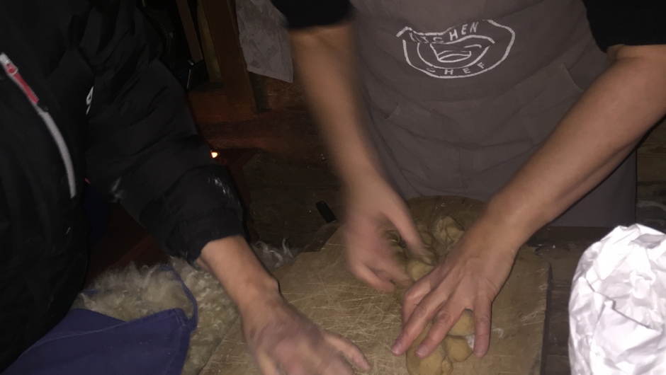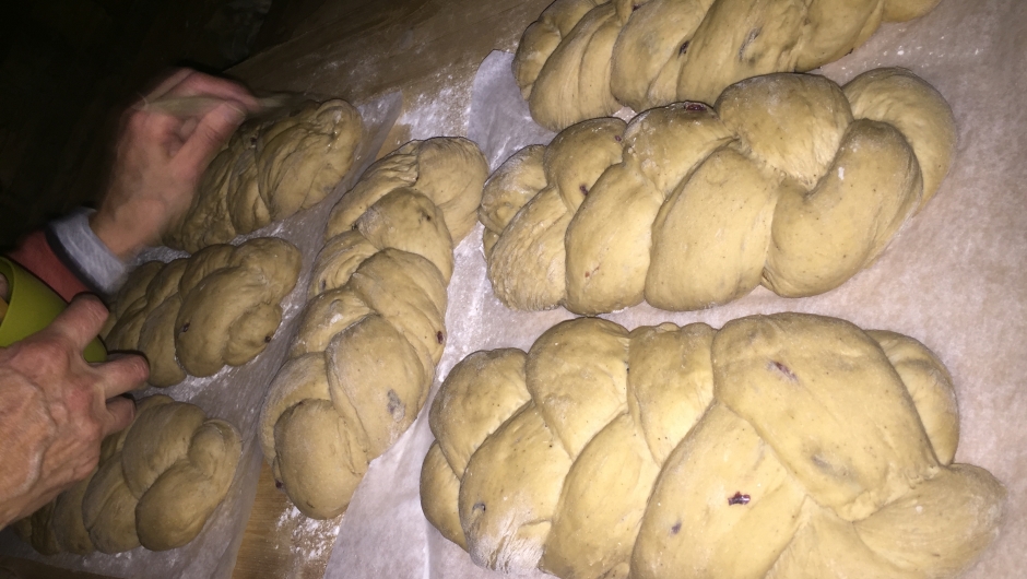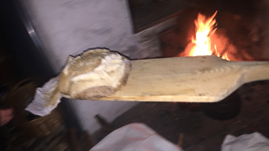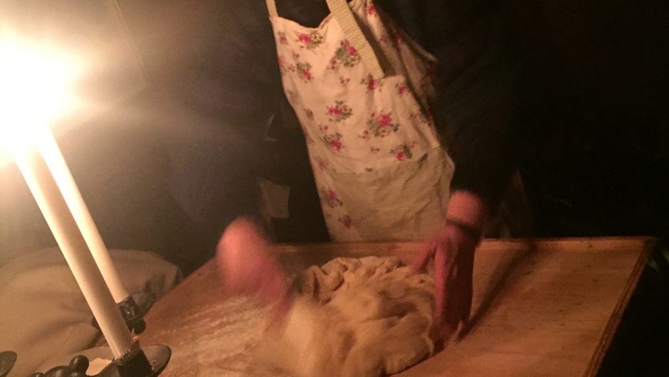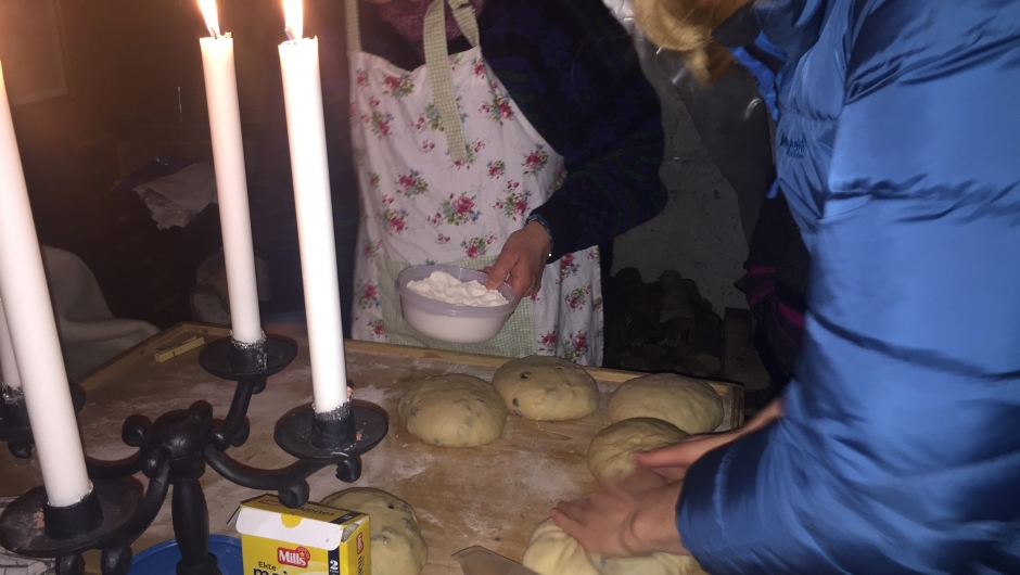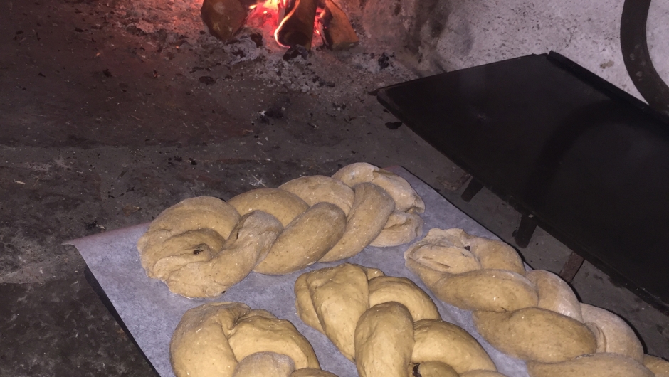 Inne i størhuset hadde Inger Karin varmet opp bakerovnen. Alle fikk prøve seg på å bake vørterbrød, julebrød og brød for så å steke dem i bakerovnen.