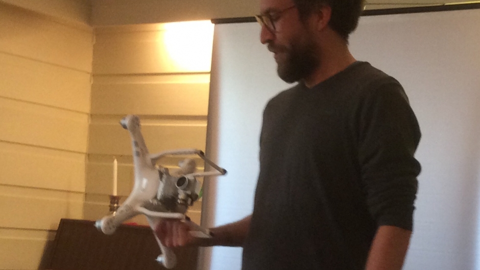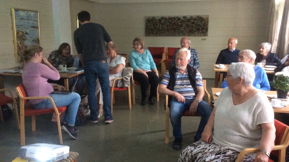 15 stk - deriblant 3 menn - var kommet for å høre Mathias fortelle om denne hobbyen/interessen som mange er opptatt av - men kanskje ikke så mange av oss. Etter at leder Jorunn Kjærnes hadde ønsket velkommen og gitt ordet til Mathias fortalte han mangt og meget om mulighetene som finnes. Og de virker som er mange. Den styres av en datamaskin og ved ulike tilkoplinger kan en få bilder av både det som synes og det som kanskje bare synes som ulike farger. Det er Luftfartsloven som gjelder for droner. Bl.a. må en være 50 m fra personer/hus og 150 m fra menneskesamlinger. Og viktig: Hold god avstand til flyplasser! Det skaper mye trøbbel når en drone dukker opp der fly skal lette og lande. Noen droner har stor rekkevidde, men det anbefales å holde seg innenfor synsrekkevidden. Mathias driver et droneselskap "på si" der han hjelper personer og firmaer å komme i gang og kanskje løse problemer de har havnet i ved bruk av droner. Han kan nok hjelpe til med mange ideer. Denne dagen hadde han med Siri som assisterte. Begge ble til kaffe som ble servert av kveldens vertinner Britt Kempe og Karin Haughem. Tusen takk for deilig servering!