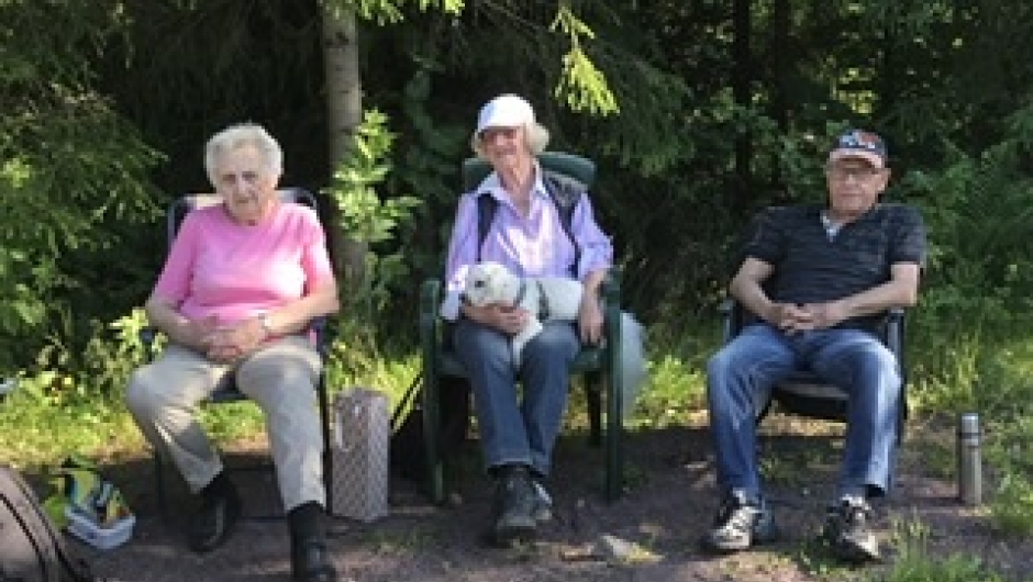 Vi inviterte til sommertreff med følge. 14 stk og en hund møtte opp medbrakt både kaffe, niste og forfriskninger. Det ble en deilig ettermiddag på Krokeborgåsen.
