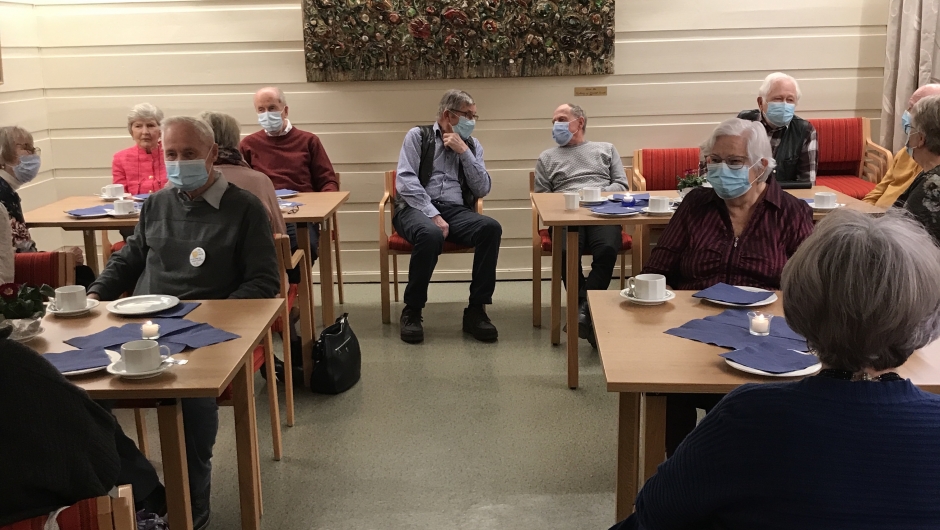 Alle troppet opp med munnbind denne dagen, da vi i forkant var litt usikre på avstand i forhold til antall. Men det gikk fint – og maskene falt etter hvert.