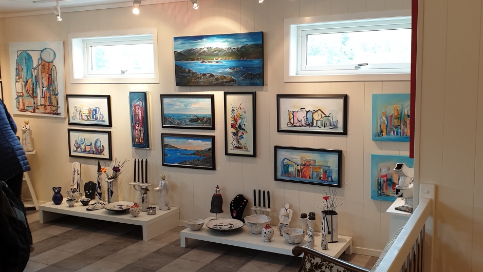 No gjekk turen vidare til Galleri Pema, der me fekk omvisning av kunstnarane , dei produserer raku keramikk, silketrykk, maleri i akryl og foto.