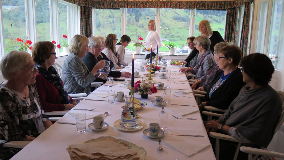 På Singerheimen vart vi mottekne av styrar Vigdis Loftesne,ho serverte spekemat tellerken,heimebake flatbrød, eplekake og kaffe. Ho fortalde om Herr og Fru Singer å alt dei hadde gjort for Olden og bygdene omkring. Vi fekk omvisning i huset og atelieret.