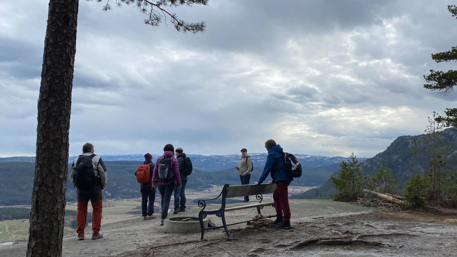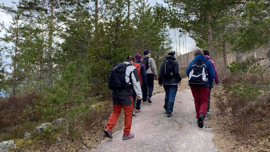 Det møtte opp syv kvinner og hunden Tavi til en flott tur til Ding-Dang Kyrkja. Alle kom med godt humør og ved kyrkja blei det kaffi, kakao og noe godt ved siden av.